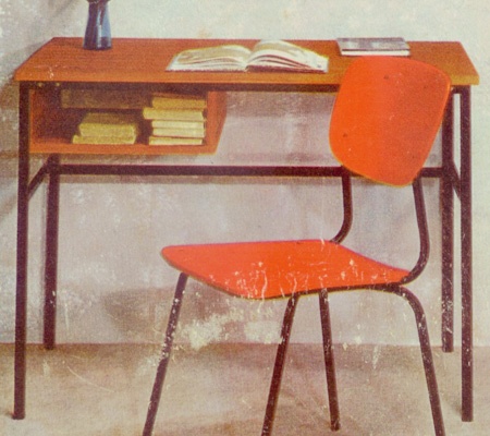 Bureau identique au "junior 68", mais avec face de tiroir en aggloméré stratifié.