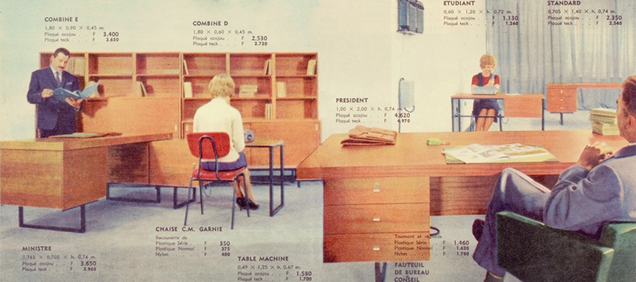 En 1961, la gamme de bureaux est également renouvelée. Comme les autres meubles, les bureaux sont désormais conçus sur une base standardisée.