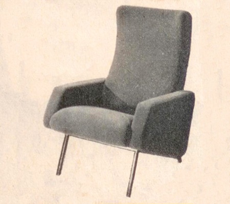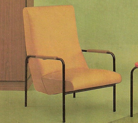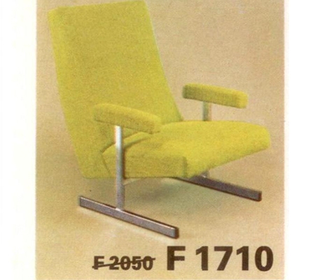 "Evolution" du fauteuil Réclame, accoudoirs modifiés. Existe en version chauffeuse, fauteuil ou canapé composé d'éléments juxtaposés.