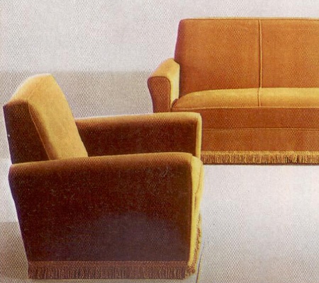 Fauteuil à dossier bas, accoudoirs en bois parfois garnis, existe en version chauffeuse, fauteuil ou canapé. -------------------------------------