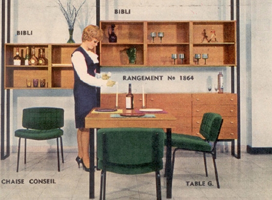 Bien que proposé à la vente à partir de 1966, le système Meuroplan était déjà dans les projets de Pierre Guariche dès 1963, comme en témoigne cette illustration.