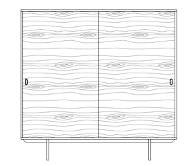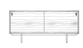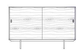 Le principe reste le même, un meuble à 2 portes coulissantes sur piétement métallique laqué noir, avec pour les premières séries des poignées rondes en bakélite encastrées (les poignées deviendront ovales à partir de fin '61).