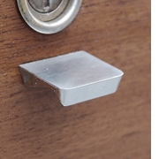 type 5 : poignée de forme rectangulaire, en aluminium brossé, 30x24mm. (1964-1967)