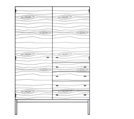 tous les tiroirs font 60cm de large pour 15cm de haut, les portes font toutes 60cm de large, et 60, 90 ou 150cm de haut, hormis la porte abattante qui mesure 45cm de haut. Les meubles sont modulaires et combinables les uns avec les autres, ils peuvent donc être utilisés seuls, ou en combinaison variée.