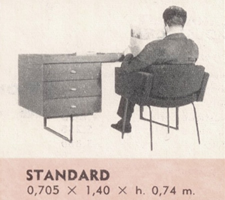 En 1961, la gamme de bureaux est également renouvelée. Comme les autres meubles, les bureaux sont désormais conçus sur une base standardisée.