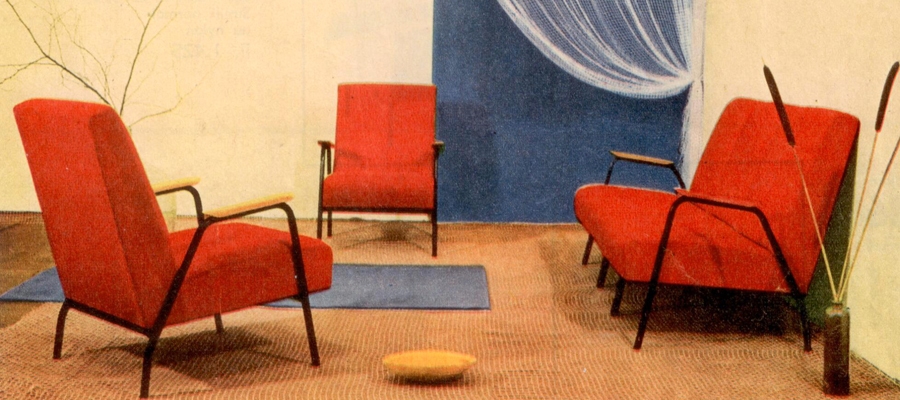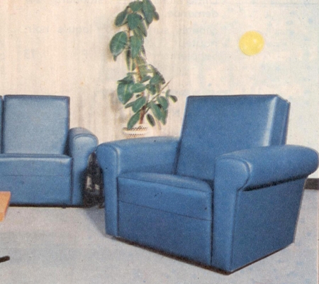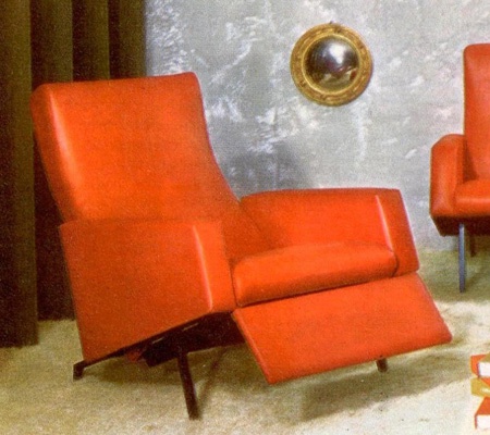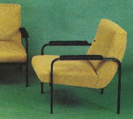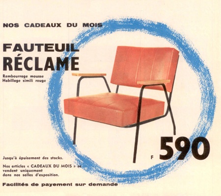 "Evolution" du fauteuil Réclame, accoudoirs modifiés. Existe en version chauffeuse, fauteuil ou canapé composé d'éléments juxtaposés.