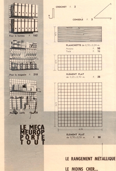 En 1966, des tablettes en plastic ajouré sont mises au point, c'est le MECAPLAST.