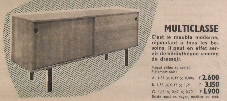 La production de mobilier de rangement est assez réduite les premières années. Seule la gamme "multiclasse" est produite entre 1957 et 1960.