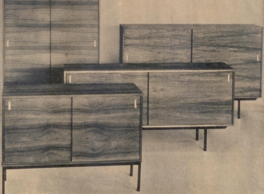 En décembre 1960, la gamme de mobilier est entièrement renouvelée. Les meubles de rangement sont désormais conçus sur une base standardisée :